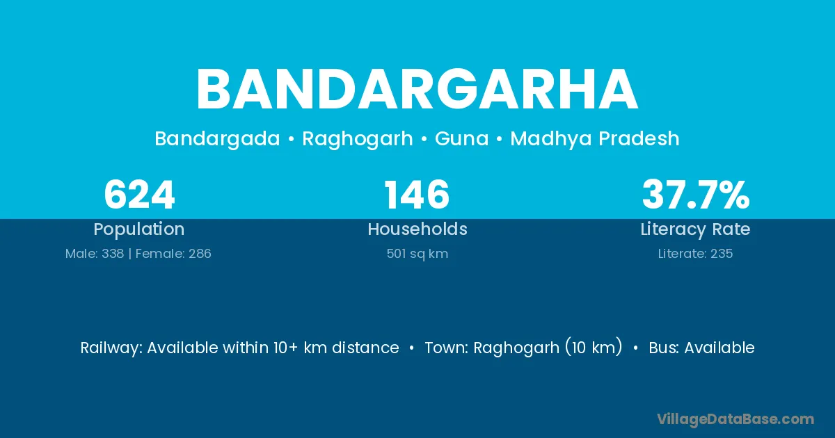 Raghogarh (10 km) is the nearest town to Bandargarha village for major economic activities and is located approximately 10 km away.