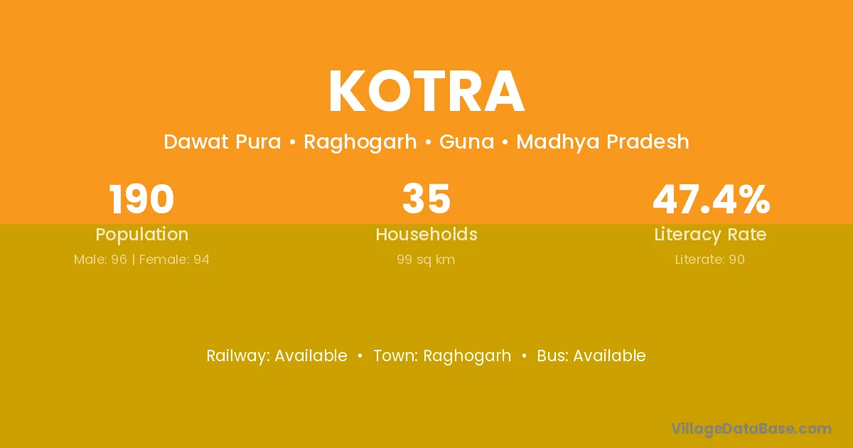 Raghogarh is the nearest town to Kotra village for major economic activities