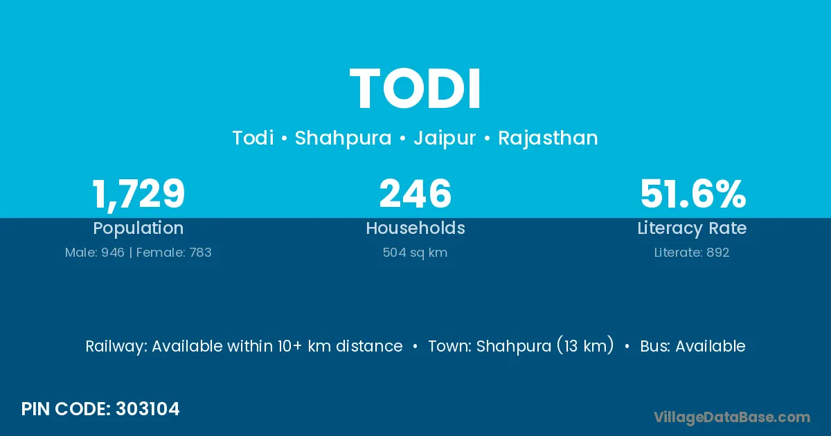 Raghogarh (19 km) is the nearest town to Todi village for major economic activities and is located approximately 19 km away.