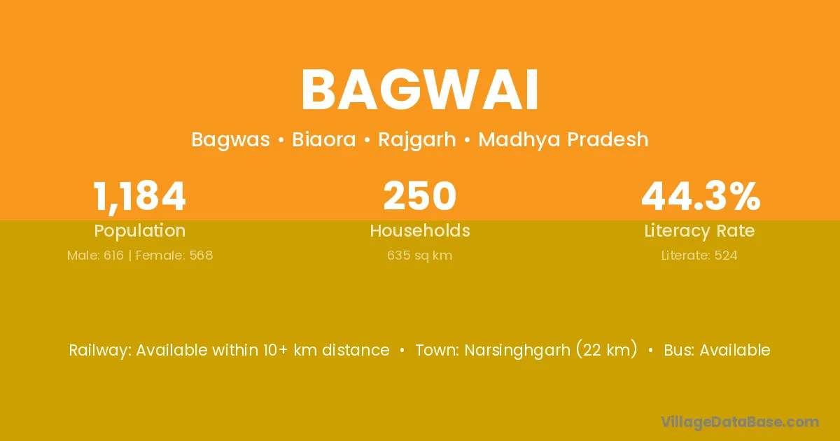There are approximately 629 households in Bagwai village.
