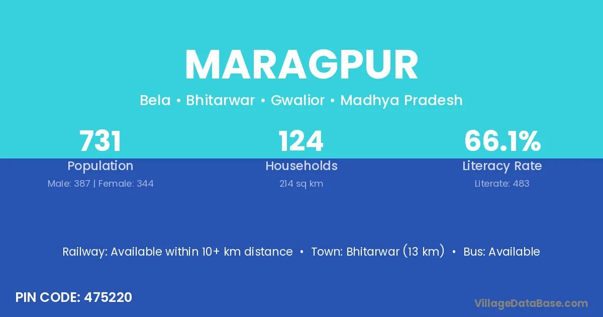 Bhitarwar (13 km) is the nearest town to Maragpur village for major economic activities and is located approximately 13 km away.