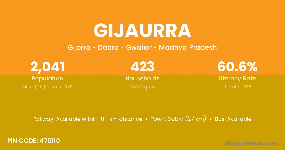 According to Census 2011 information, the village code of Gijaurra village is 475110.