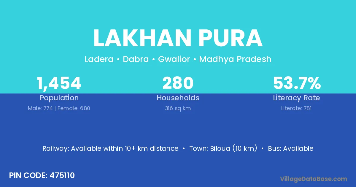 Lakhan Pura village has a total population of 1,454 people, of which 774 are males and 680 are females.