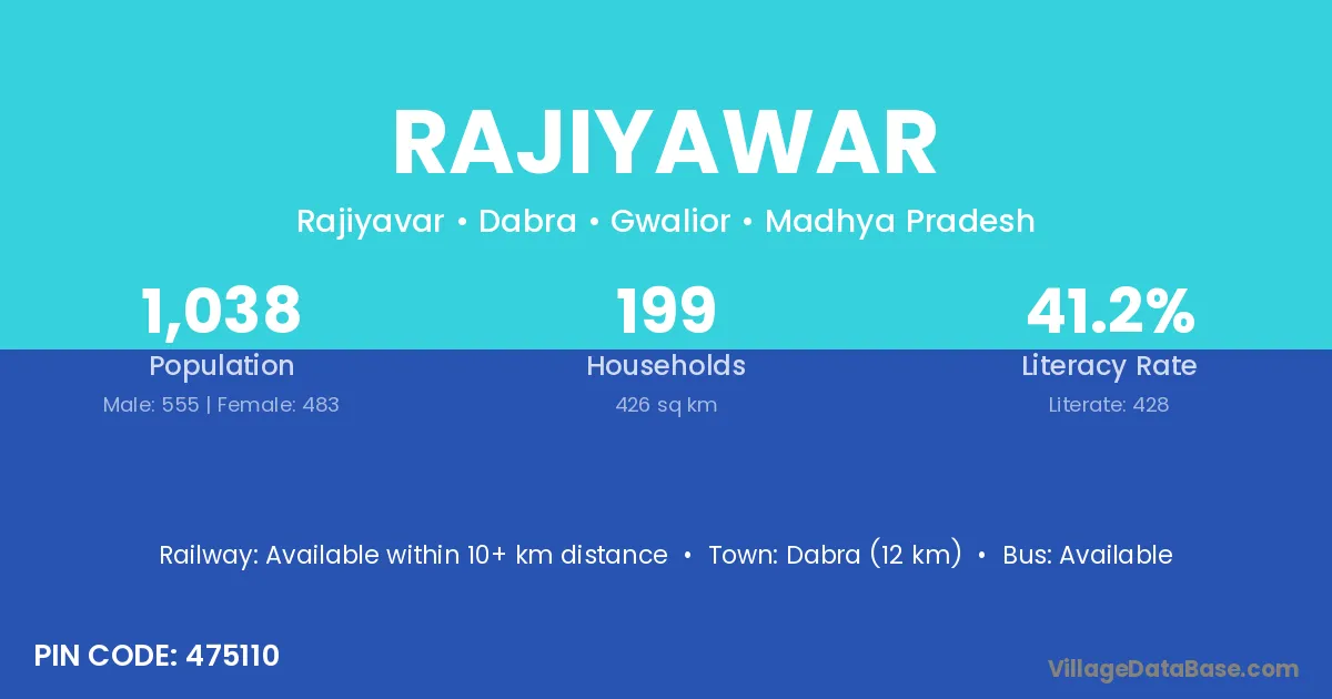 Dabra (12 km) is the nearest town to Rajiyawar village for major economic activities and is located approximately 12 km away.