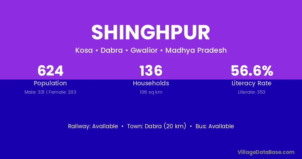 Dabra (20 km) is the nearest town to Shinghpur village for major economic activities and is located approximately 20 km away.