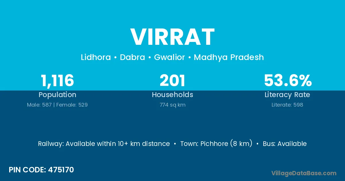 Pichhore (8 km) is the nearest town to Virrat village for major economic activities and is located approximately 8 km away.