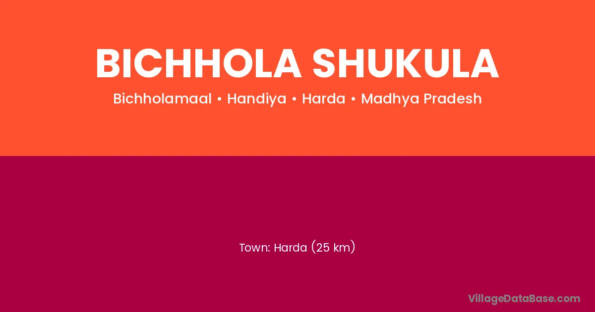 Harda (25 km) is the nearest town to Bichhola Shukula village for major economic activities and is located approximately 25 km away.