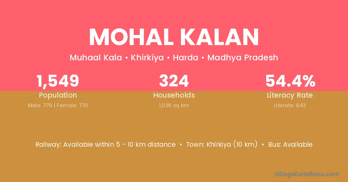 Mohal Kalan village has a total population of 1,549 people, of which 779 are males and 770 are females.