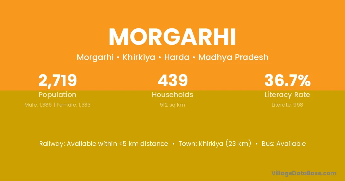 Khirkiya (23 km) is the nearest town to Morgarhi village for major economic activities and is located approximately 23 km away.