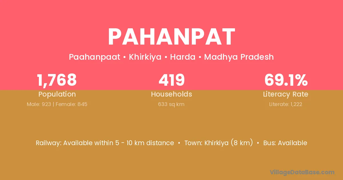Khirkiya (8 km) is the nearest town to Pahanpat village for major economic activities and is located approximately 8 km away.