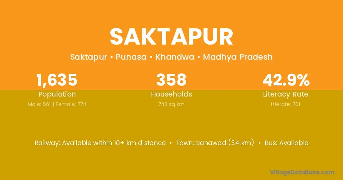 Khirkiya (14 km) is the nearest town to Saktapur village for major economic activities and is located approximately 14 km away.
