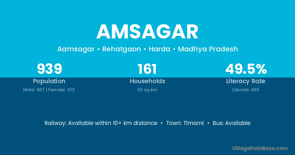 Amsagar village has a total population of 939 people, of which 467 are males and 472 are females.