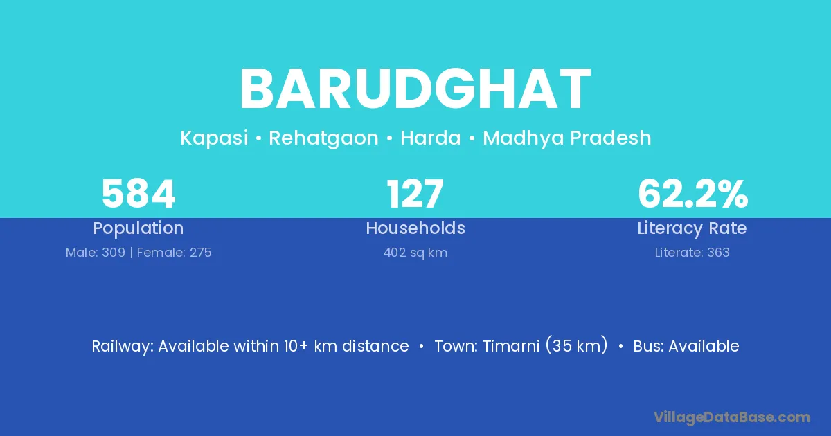 Timarni (35 km) is the nearest town to Barudghat village for major economic activities and is located approximately 35 km away.