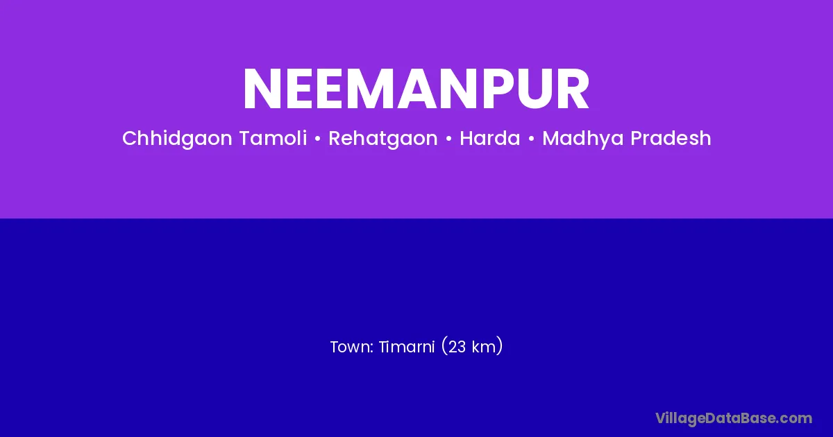 Timarni (23 km) is the nearest town to Neemanpur village for major economic activities and is located approximately 23 km away.