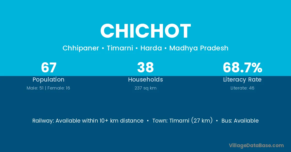 Timarni (27 km) is the nearest town to Chichot village for major economic activities and is located approximately 27 km away.