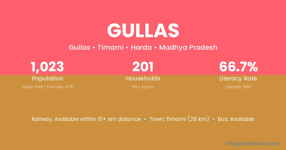 Gullas village is located in the Timarni Tehsil of the Harda district in Madhya Pradesh .
