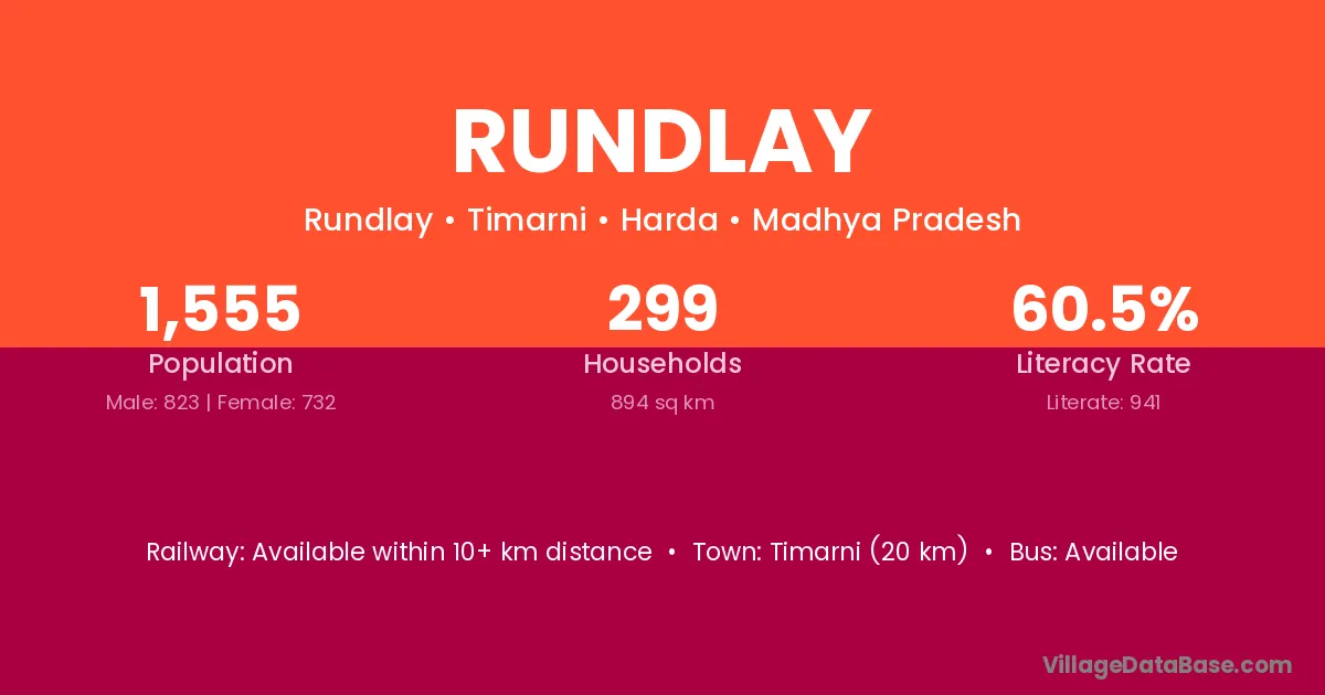 Rundlay village is located in the Timarni Tehsil of the Harda district in Madhya Pradesh .