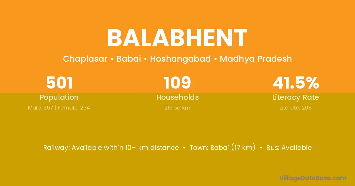 Babai (17 km) is the nearest town to Balabhent village for major economic activities and is located approximately 17 km away.