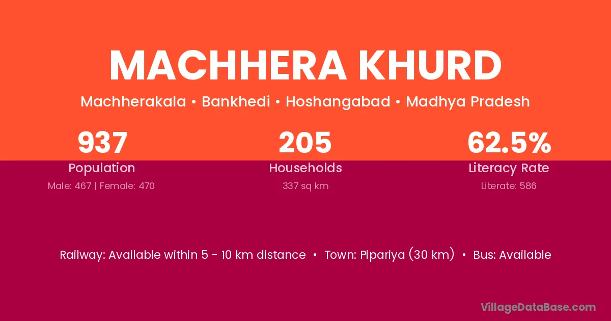 Machhera Khurd village has a total population of 937 people, of which 467 are males and 470 are females.