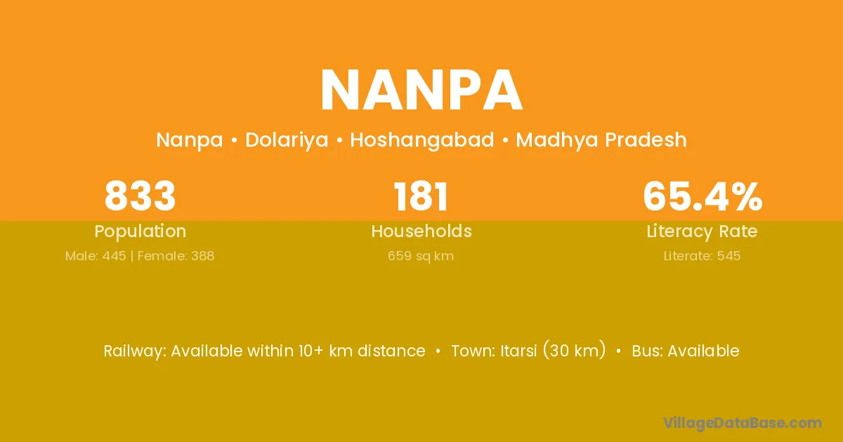 Itarsi (30 km) is the nearest town to Nanpa village for major economic activities and is located approximately 30 km away.