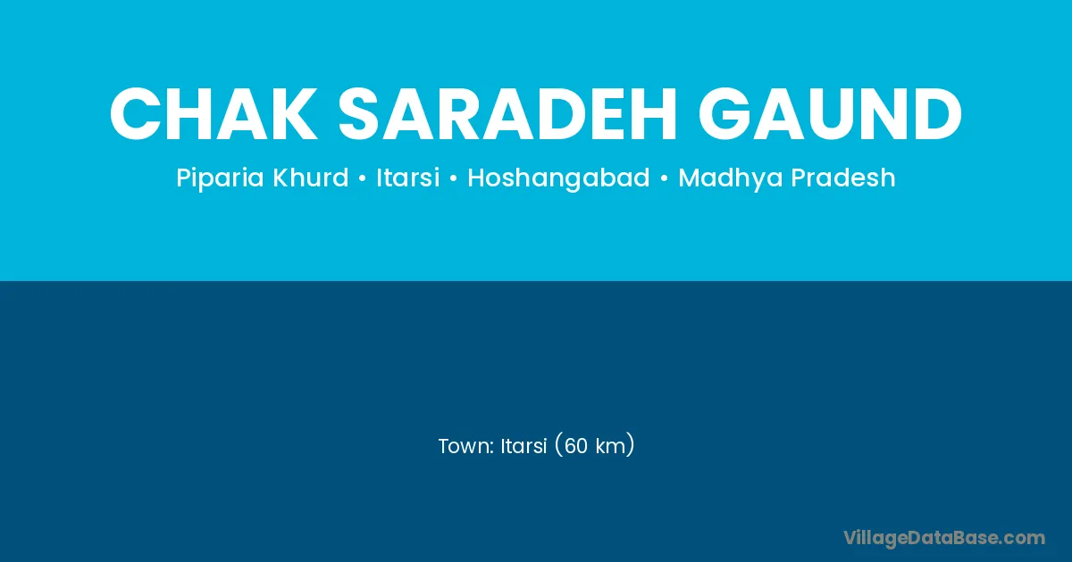 Itarsi (60 km) is the nearest town to Chak Saradeh Gaund village for major economic activities and is located approximately 60 km away.