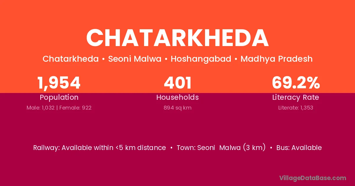 Seoni Malwa (3 km) is the nearest town to Chatarkheda village for major economic activities and is located approximately 3 km away.