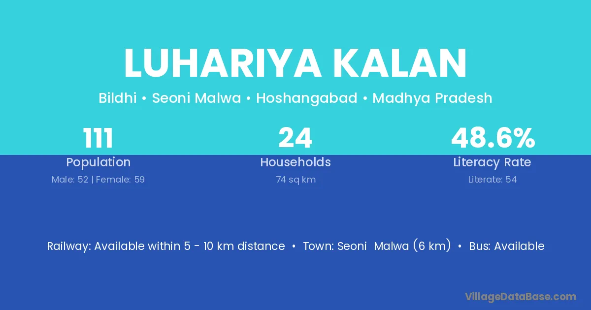 Luhariya Kalan village has a total population of 111 people, of which 52 are males and 59 are females.