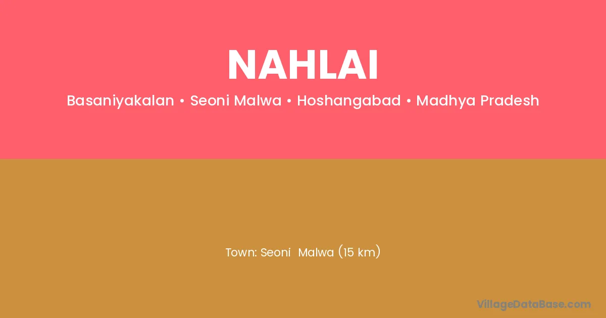Seoni Malwa (15 km) is the nearest town to Nahlai village for major economic activities and is located approximately 15 km away.