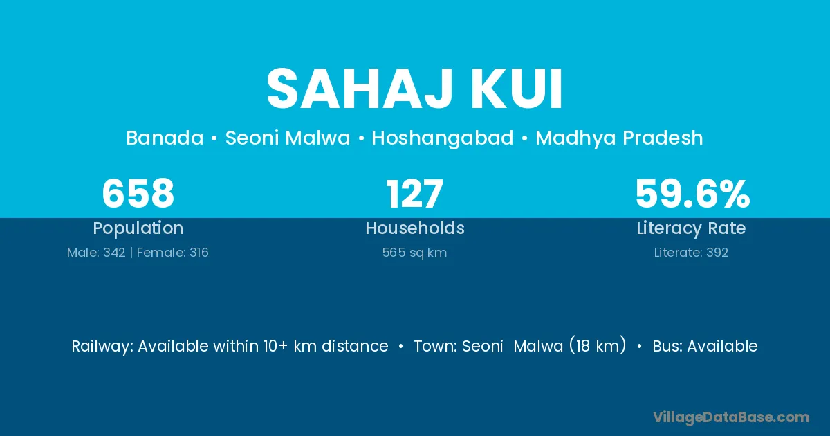 Seoni Malwa (18 km) is the nearest town to Sahaj Kui village for major economic activities and is located approximately 18 km away.