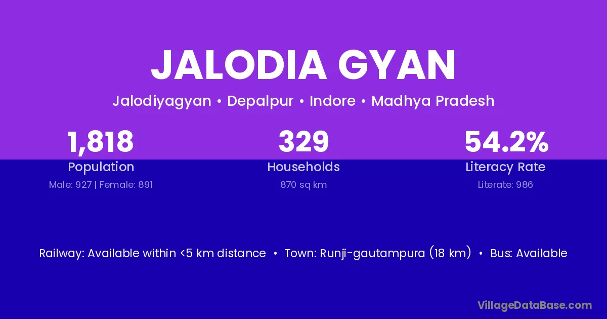 Jalodia Gyan village has a total population of 1,818 people, of which 927 are males and 891 are females.