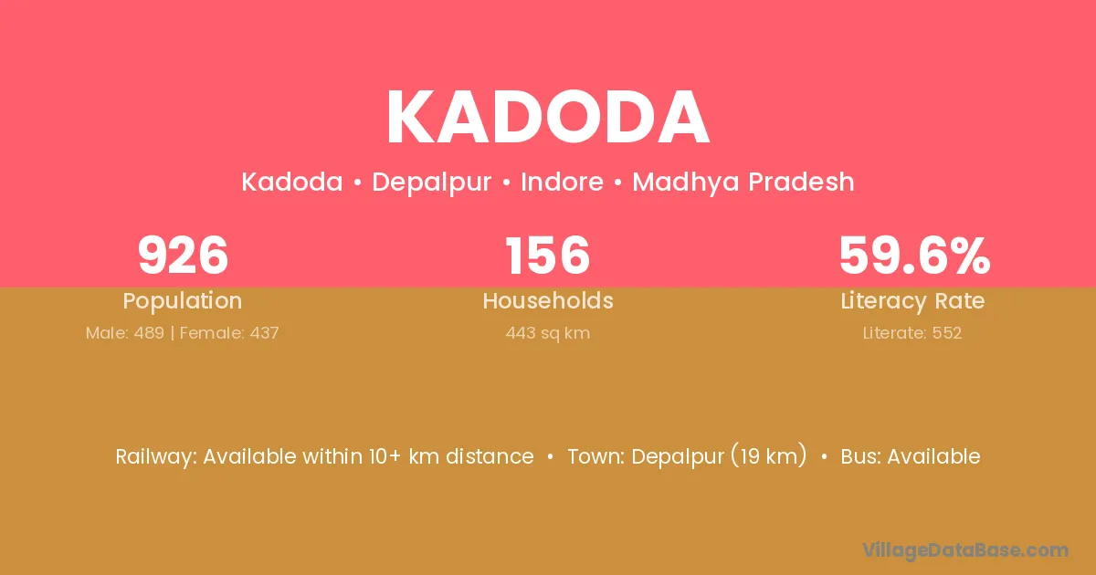 Depalpur (19 km) is the nearest town to Kadoda village for major economic activities and is located approximately 19 km away.