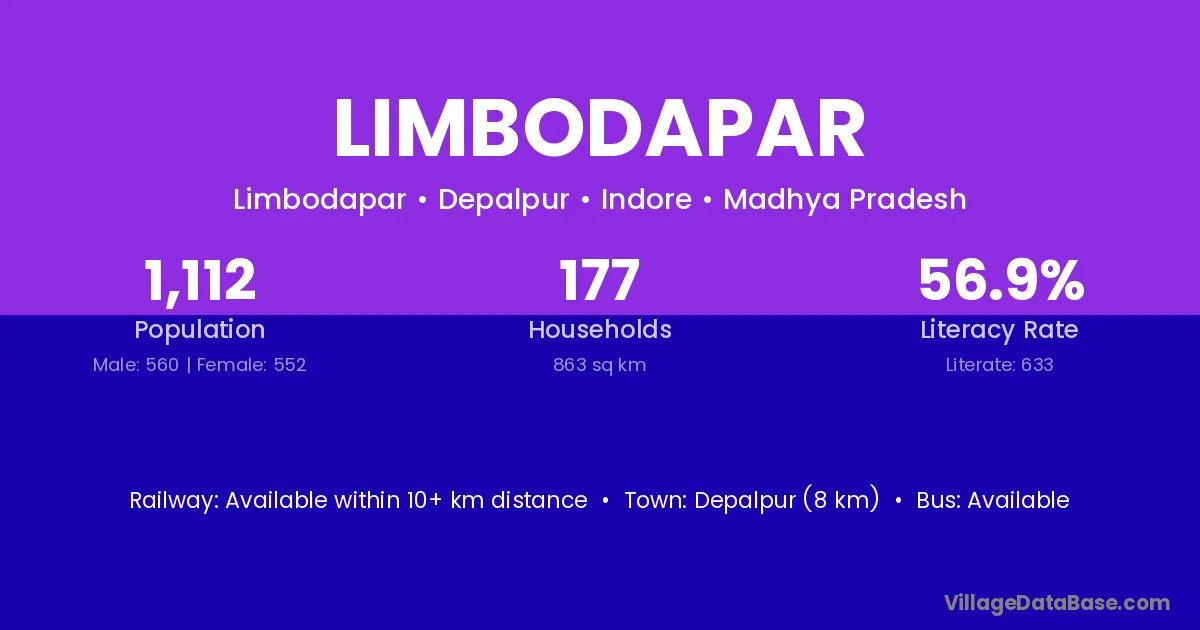 Depalpur (8 km) is the nearest town to Limbodapar village for major economic activities and is located approximately 8 km away.