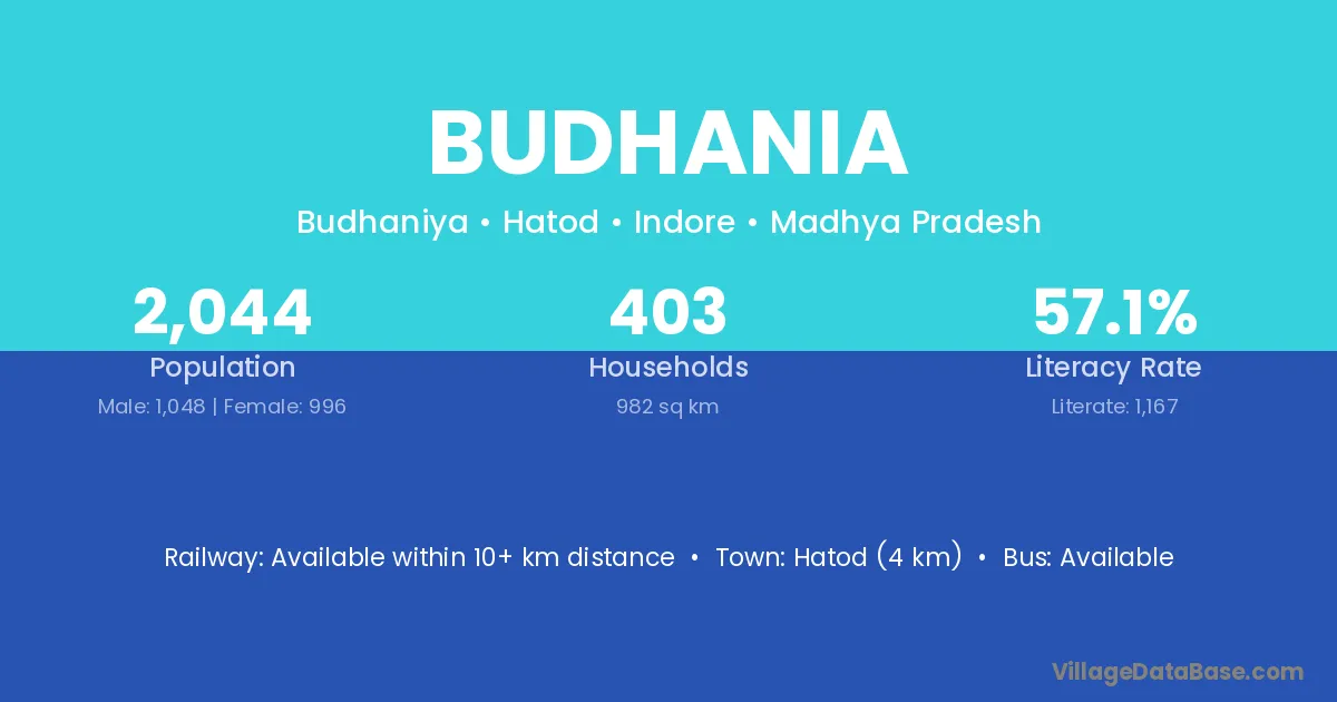 Hatod (4 km) is the nearest town to Budhania village for major economic activities and is located approximately 4 km away.