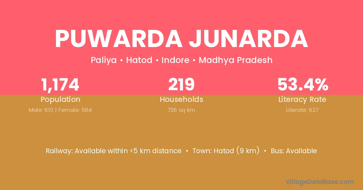 Hatod (9 km) is the nearest town to Puwarda Junarda village for major economic activities and is located approximately 9 km away.