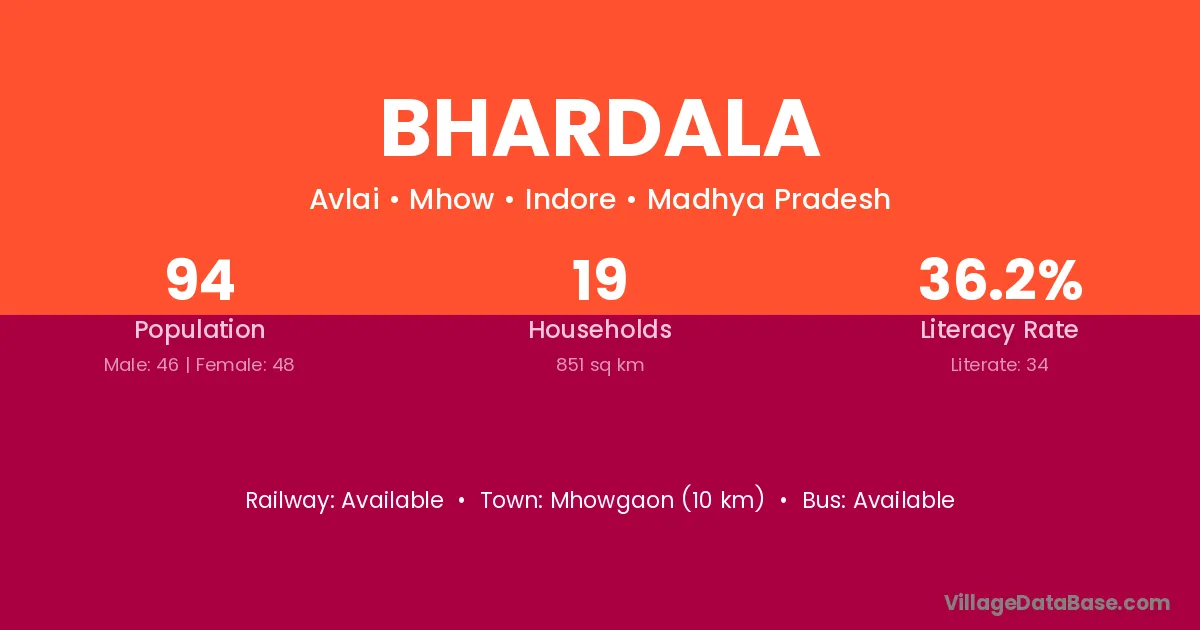 Mhowgaon (10 km) is the nearest town to Bhardala village for major economic activities and is located approximately 10 km away.