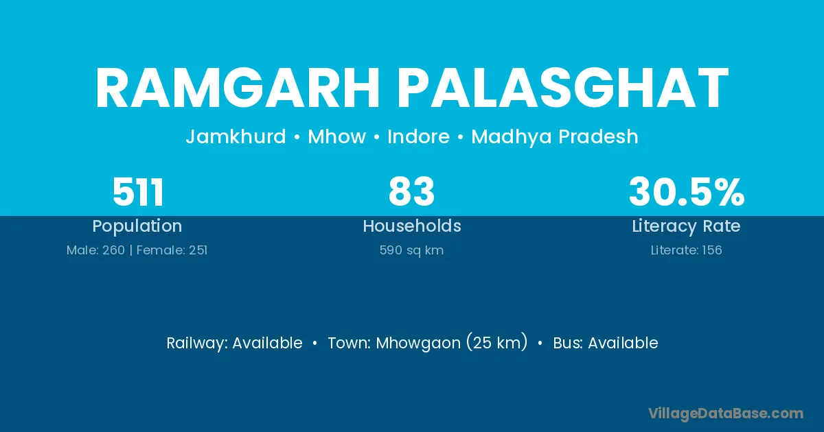 Mhowgaon (25 km) is the nearest town to Ramgarh Palasghat village for major economic activities and is located approximately 25 km away.