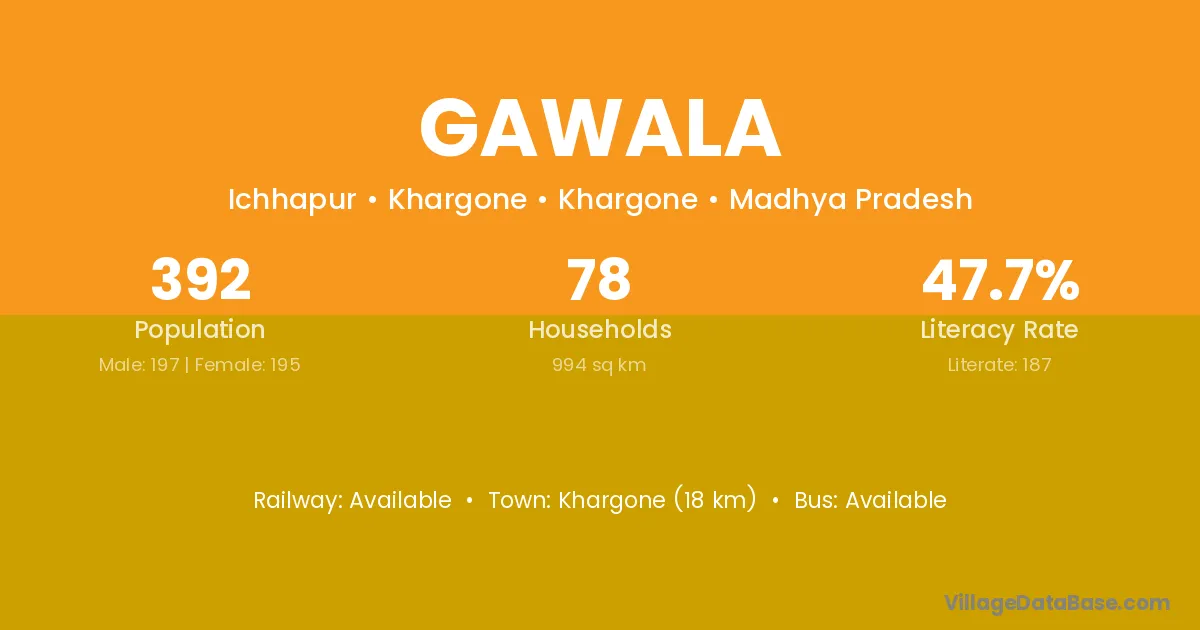 Indore (32 km) is the nearest town to Gawala village for major economic activities and is located approximately 32 km away.