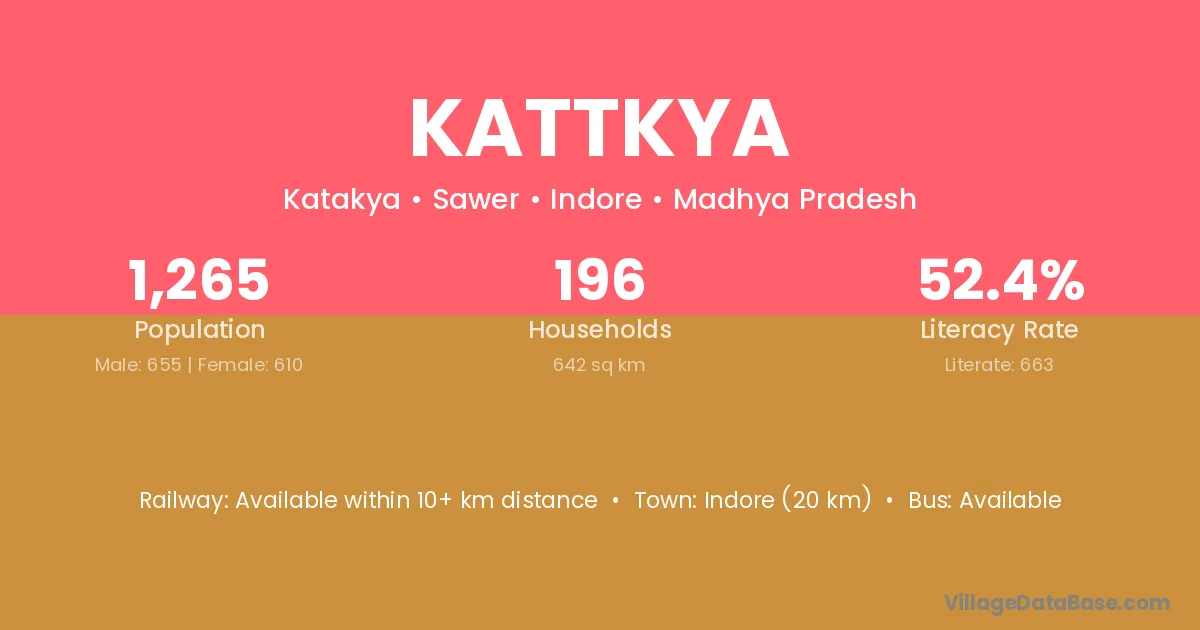 Indore (20 km) is the nearest town to Kattkya village for major economic activities and is located approximately 20 km away.