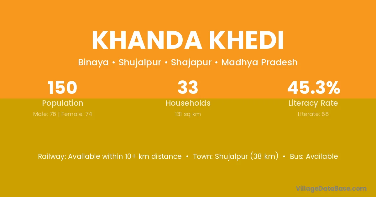 Khanda Khedi village has a total population of 269 people, of which 143 are males and 126 are females.