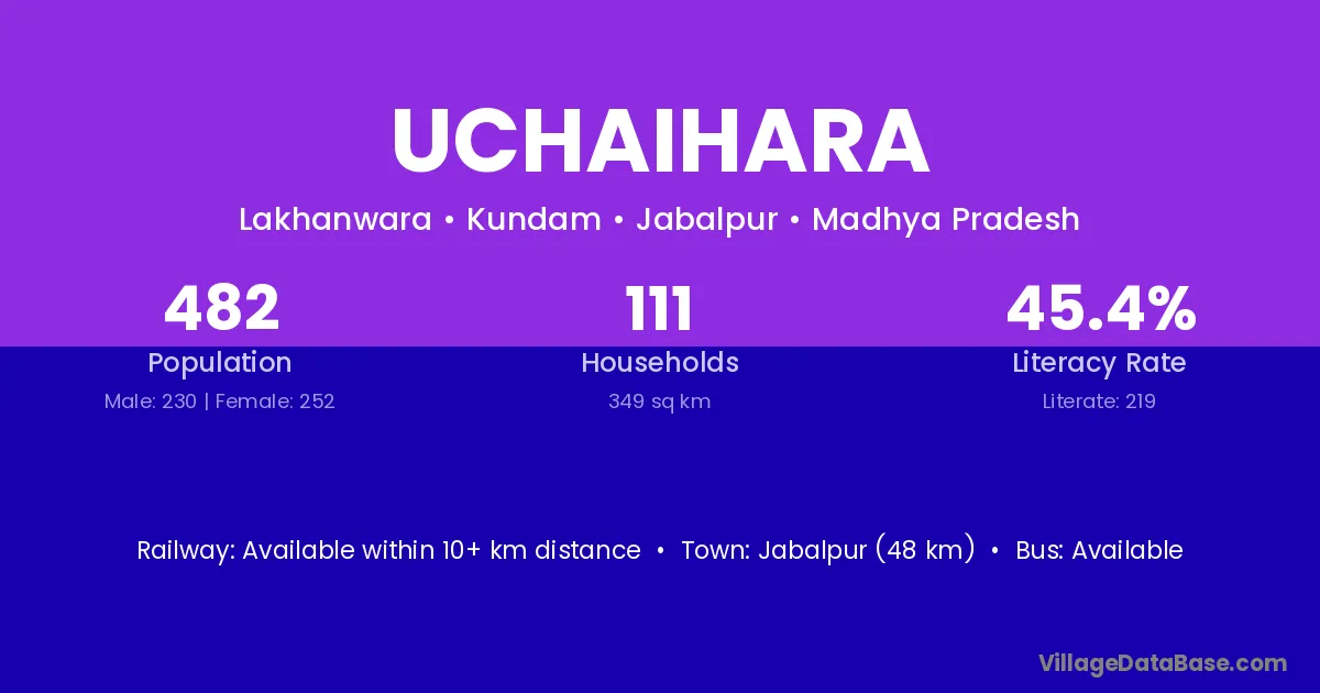 Jabalpur (48 km) is the nearest town to Uchaihara village for major economic activities and is located approximately 48 km away.