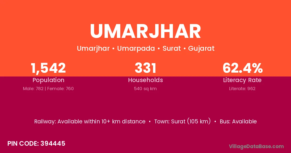 Jabalpur (50 km) is the nearest town to Umarjhar village for major economic activities and is located approximately 50 km away.