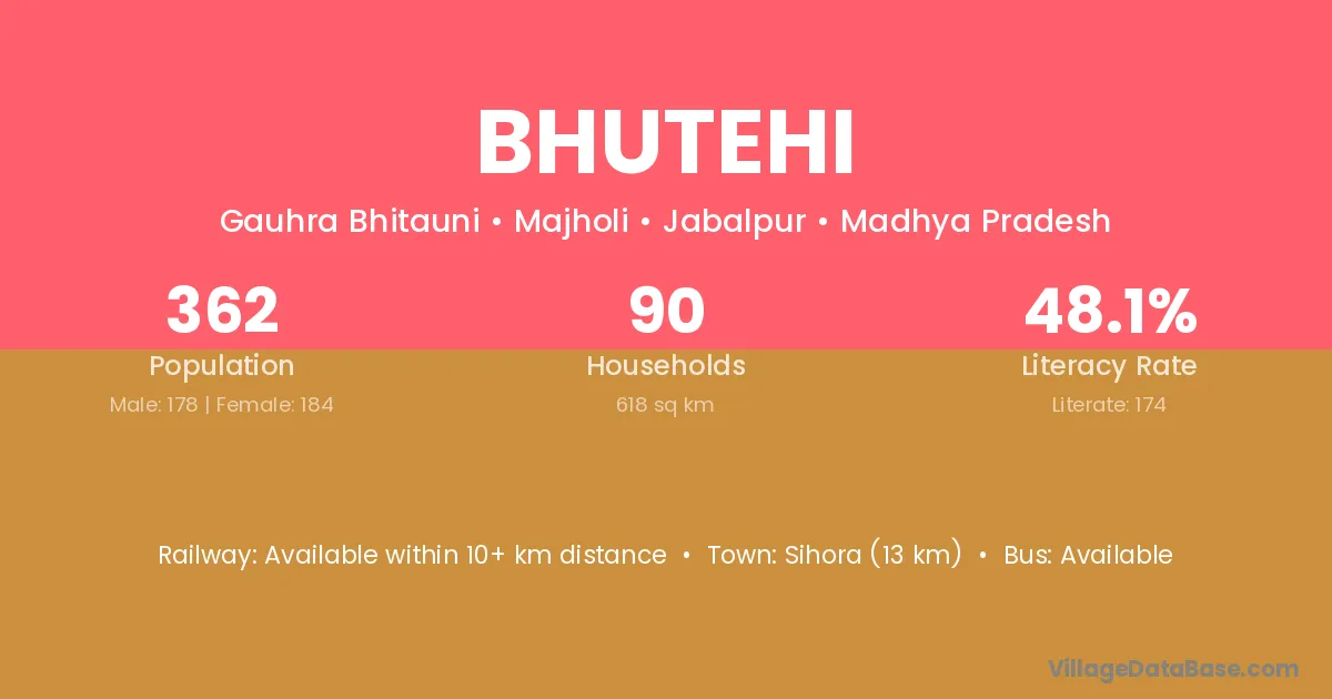 Bhutehi village has a total population of 362 people, of which 178 are males and 184 are females.