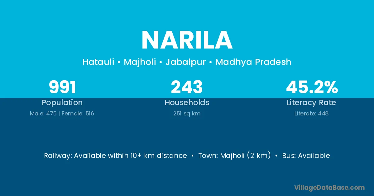Majholi (2 km) is the nearest town to Narila village for major economic activities and is located approximately 2 km away.