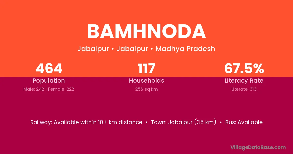 Panagar (17 km) is the nearest town to Bamhnoda village for major economic activities and is located approximately 17 km away.