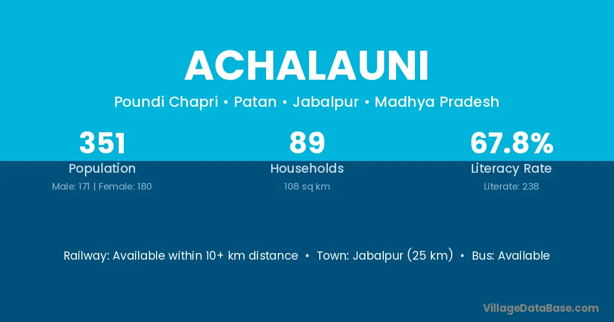 Jabalpur (25 km) is the nearest town to Achalauni village for major economic activities and is located approximately 25 km away.