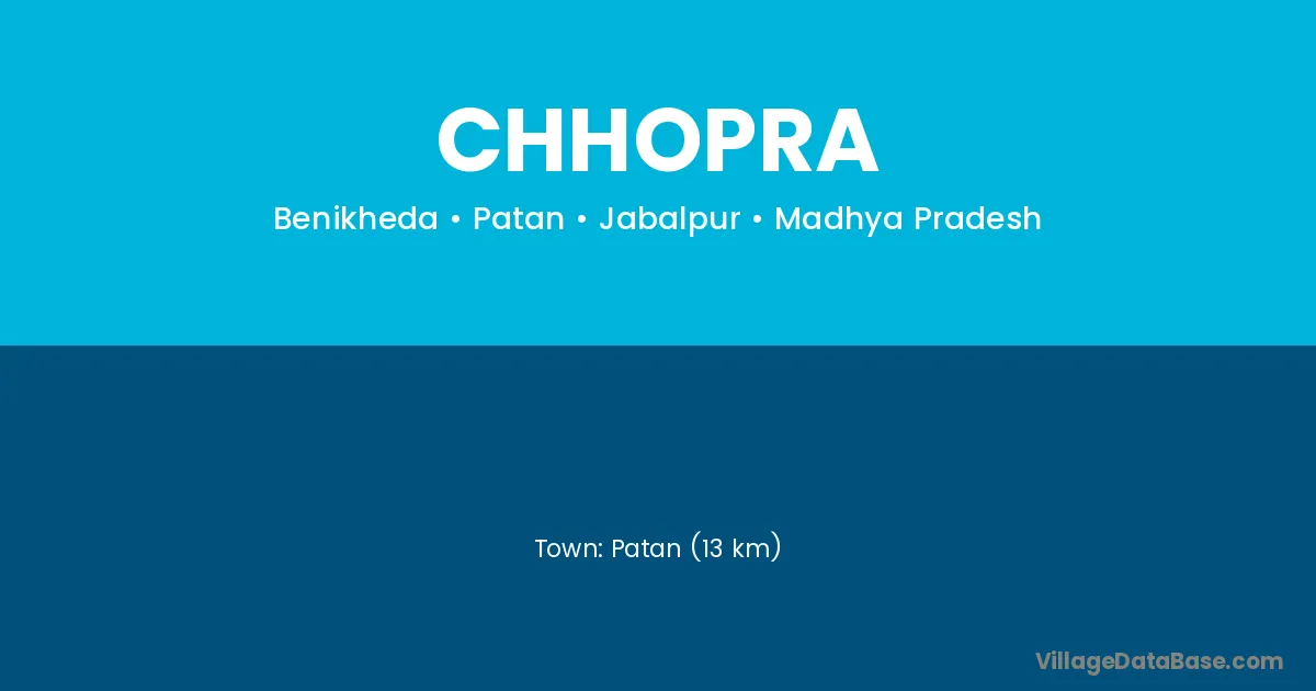 Patan (13 km) is the nearest town to Chhopra village for major economic activities and is located approximately 13 km away.