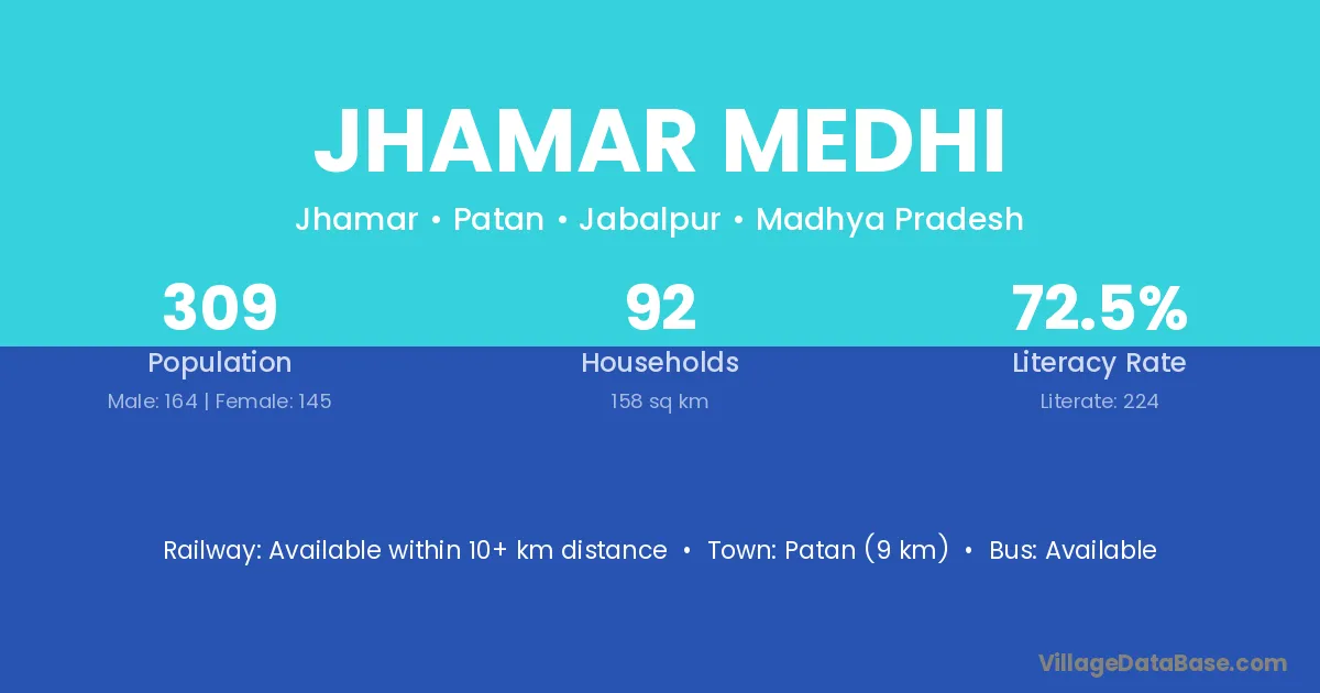 Jhamar Medhi village has a total population of 309 people, of which 164 are males and 145 are females.