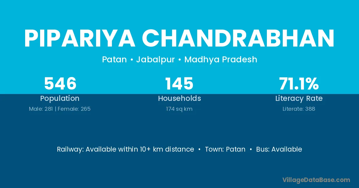 Pipariya Chandrabhan village has a total population of 546 people, of which 281 are males and 265 are females.