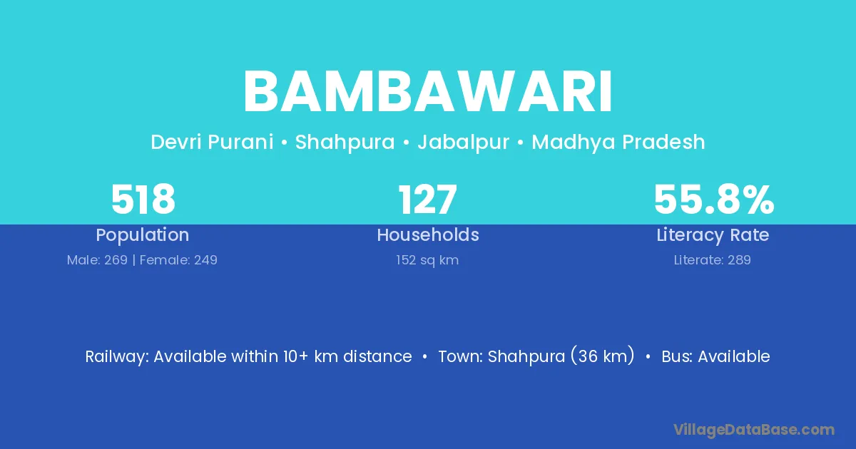 Shahpura (36 km) is the nearest town to Bambawari village for major economic activities and is located approximately 36 km away.