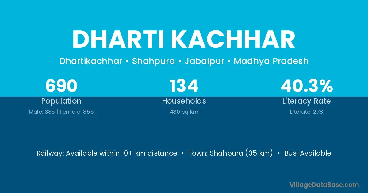 Dharti Kachhar village has a total population of 690 people, of which 335 are males and 355 are females.